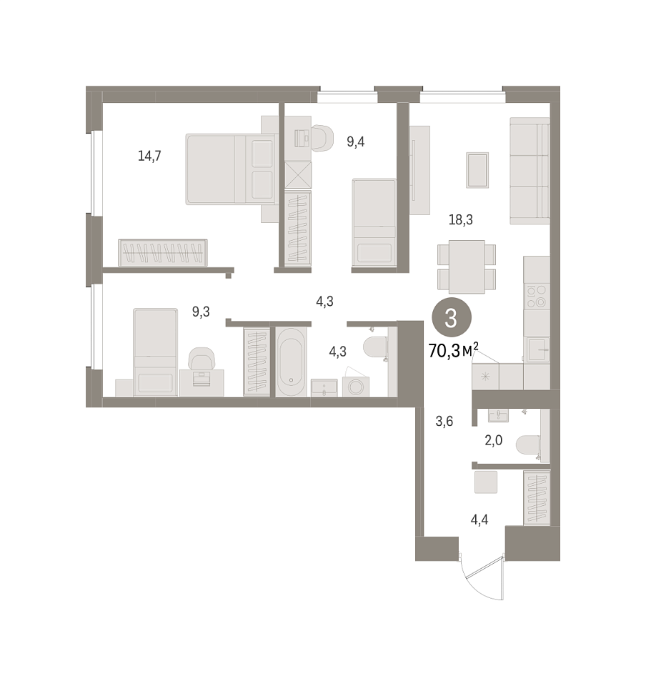 Купить новую трехкомнатную квартиру 70.3 м² на 6/9 этаже в ЖК «Северный ветер», г. Тюмень за 24630000 ₽ | Агентство недвижимости «Вплюсе.Топ» — Недвижимость России