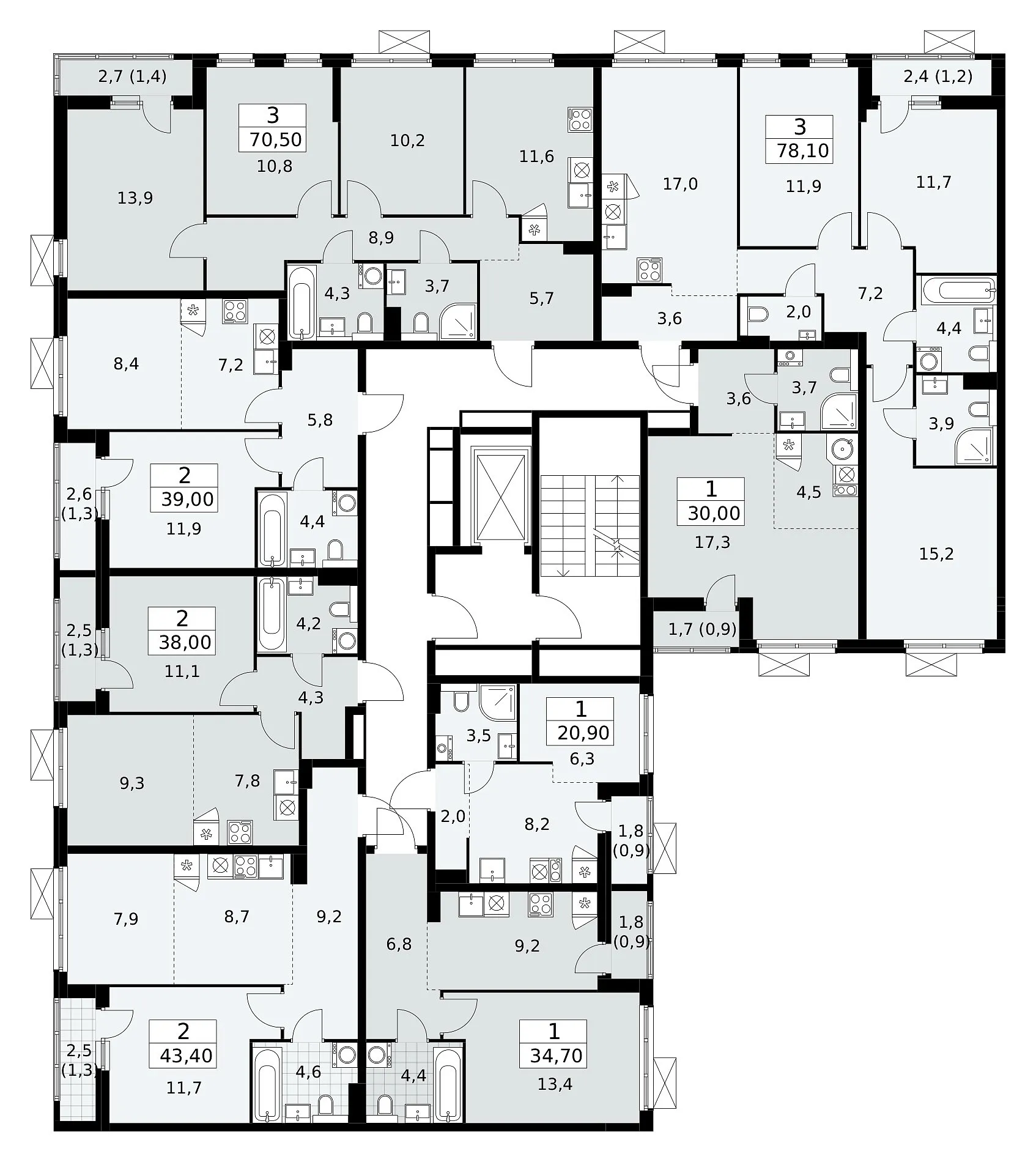 Площадь (общ/жил/кух), м2: 73.3/—/14.3