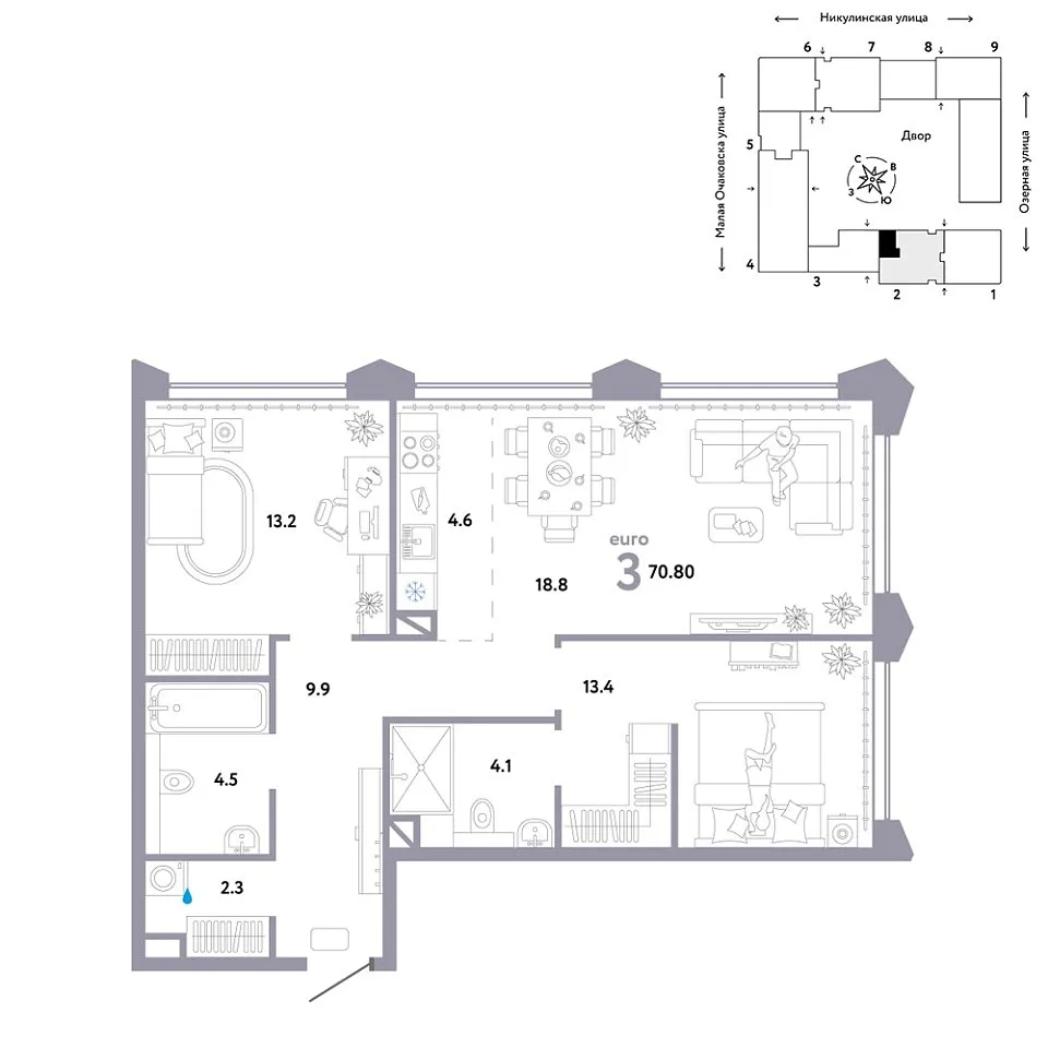 Купить новую трехкомнатную квартиру 70.8 м² на 28/30 этаже в ЖК «Страна.Озёрная», г. Тюмень за 58253333 ₽ | Агентство недвижимости «Вплюсе.Топ» — Недвижимость России