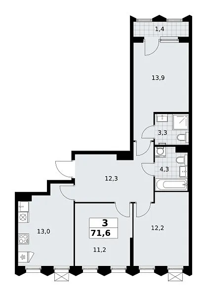 Площадь (общ/жил/кух), м2: 71.9/—/13.1