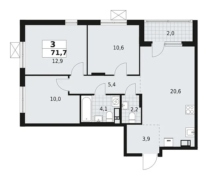 Площадь (общ/жил/кух), м2: 71.7/—/20.6