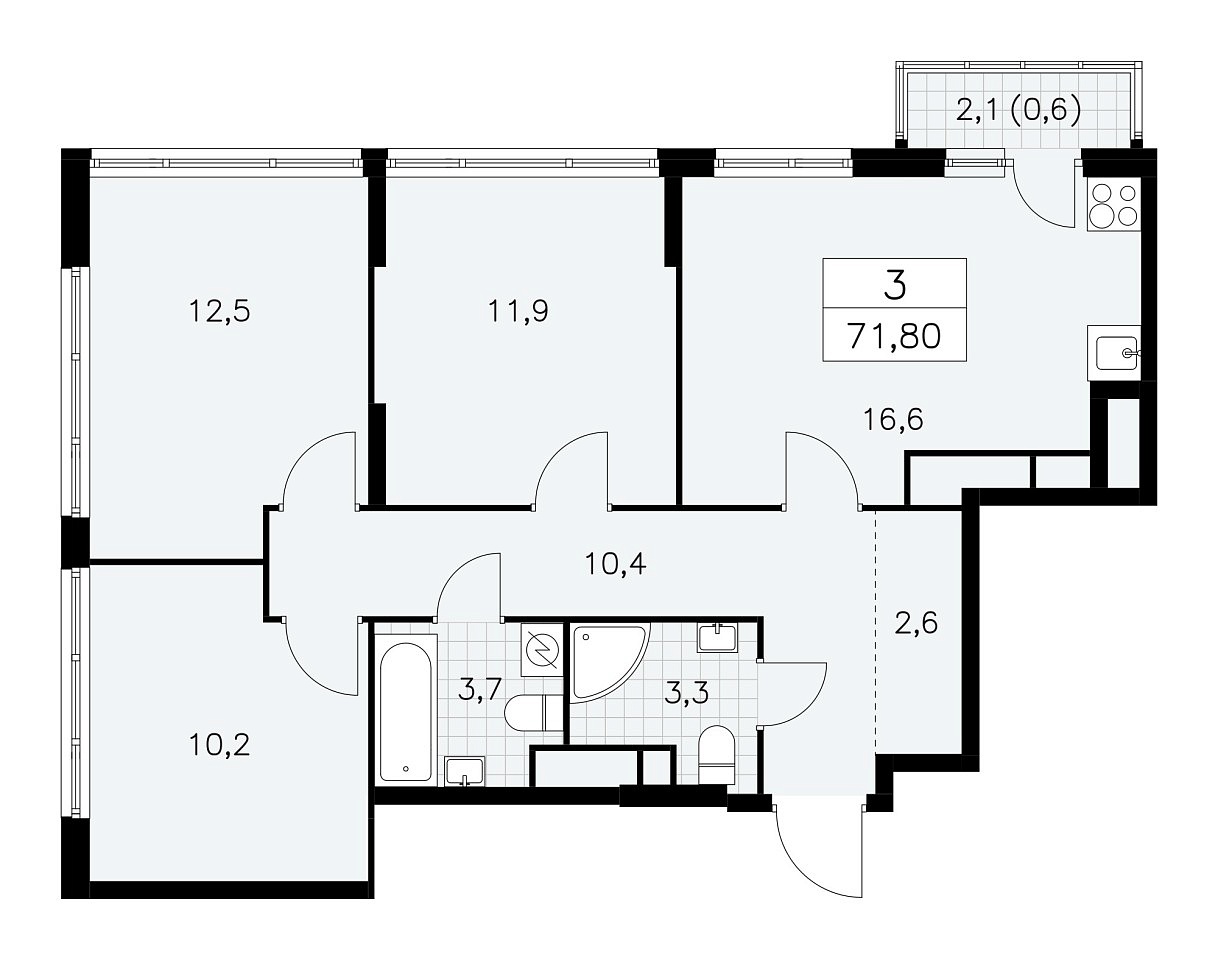 Количество комнат: 3, 71.8 кв.м.