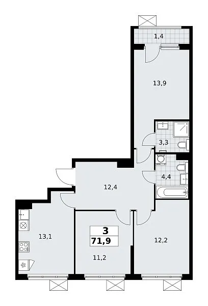 Купить новую трехкомнатную квартиру 71.9 м² на 7/11 этаже в ЖК «Деснаречье», г. Тюмень за 24572544 ₽ | Агентство недвижимости «Вплюсе.Топ» — Недвижимость России