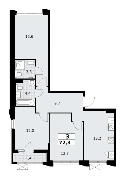 Купить новую трехкомнатную квартиру 72.3 м² на 10/16 этаже в ЖК «Деснаречье», г. Тюмень за 20770344 ₽ | Агентство недвижимости «Вплюсе.Топ» — Недвижимость России