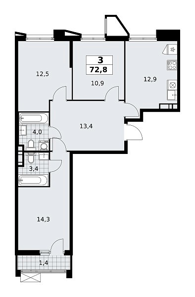 Площадь (общ/жил/кух), м2: 72.6/—/12.8