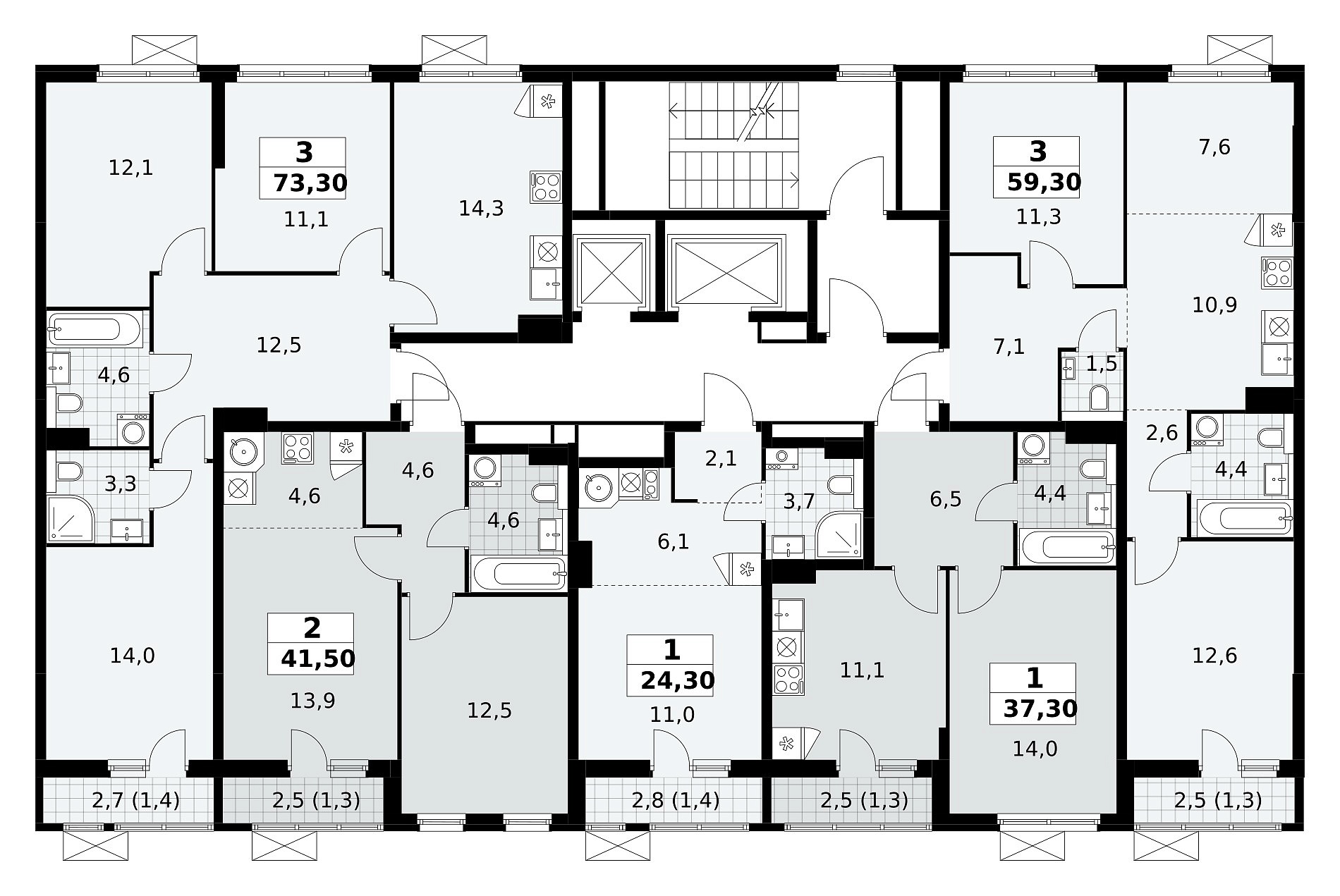 Общая площадь 73.3 м2