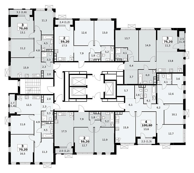 Площадь (общ/жил/кух), м2: 70/—/15.9