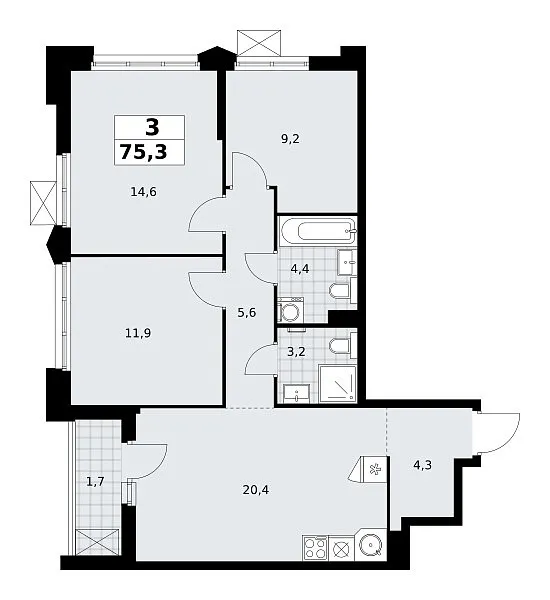 Купить новую трехкомнатную квартиру 75.3 м² на 10/22 этаже в ЖК «Деснаречье», г. Тюмень за 22845267 ₽ | Агентство недвижимости «Вплюсе.Топ» — Недвижимость России