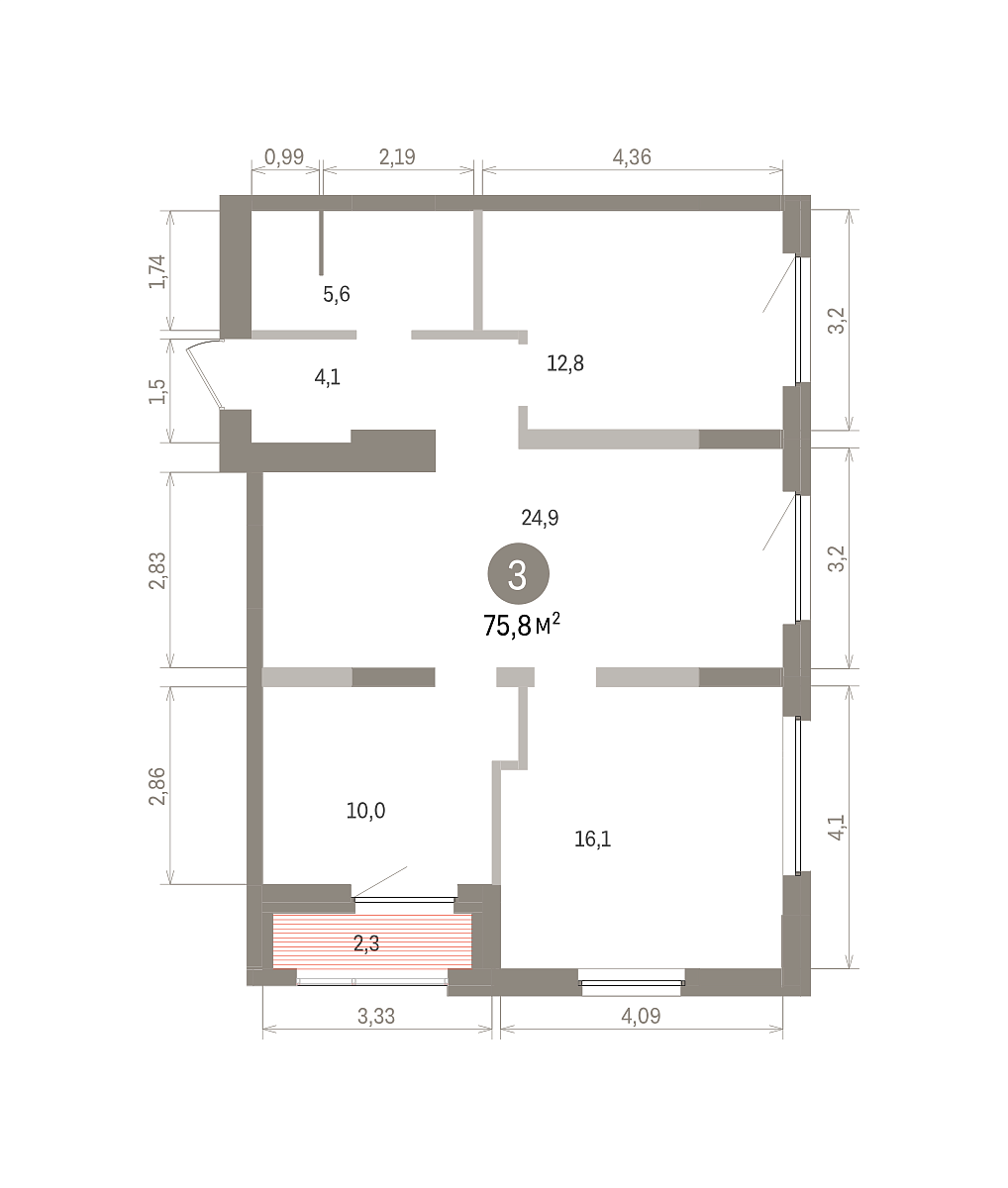 Количество комнат: 3, 75.76 кв.м.