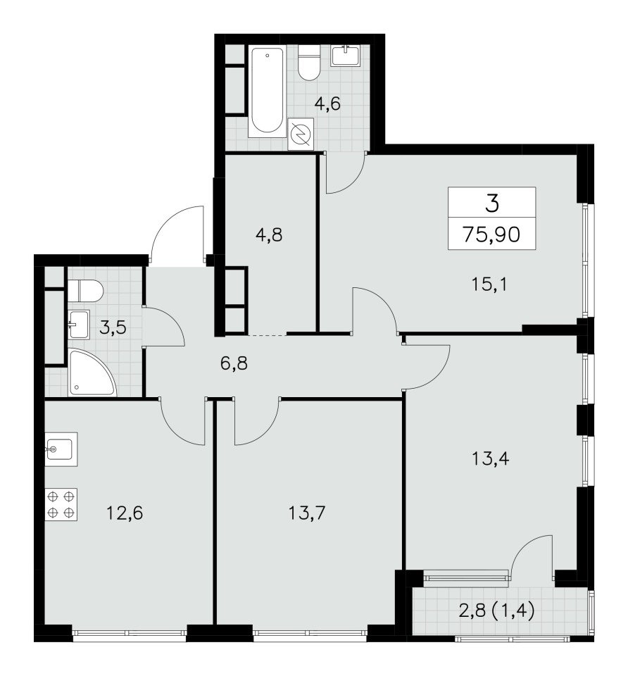 Площадь (общ/жил/кух), м2: 75.3/—/13.8