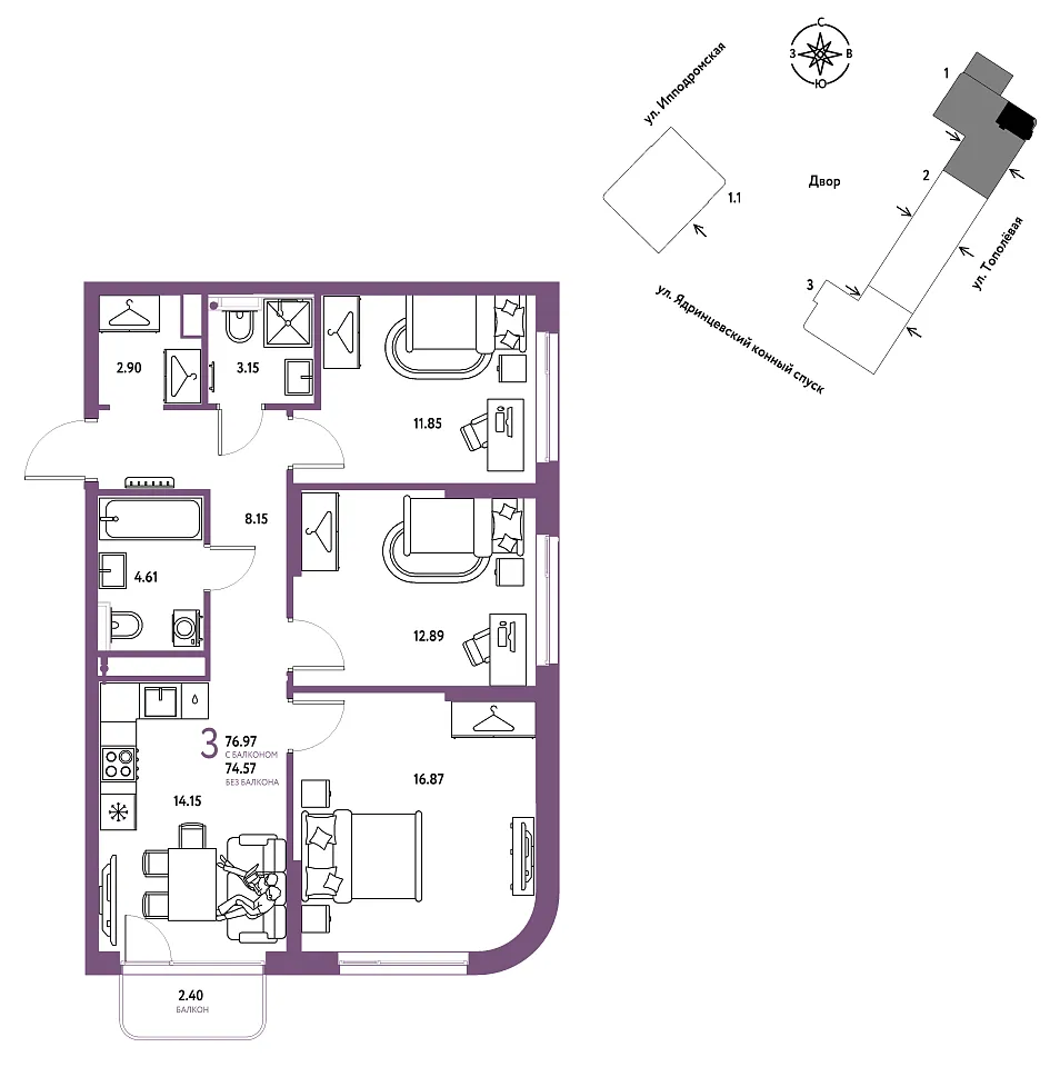 Купить новую трехкомнатную квартиру 76.97 м² на 5/9 этаже в ЖК «Страна.Тополёвая», г. Тюмень за 16729412 ₽ | Агентство недвижимости «Вплюсе.Топ» — Недвижимость России
