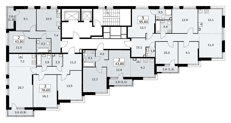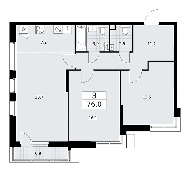 Количество комнат: 3, 76 кв.м.