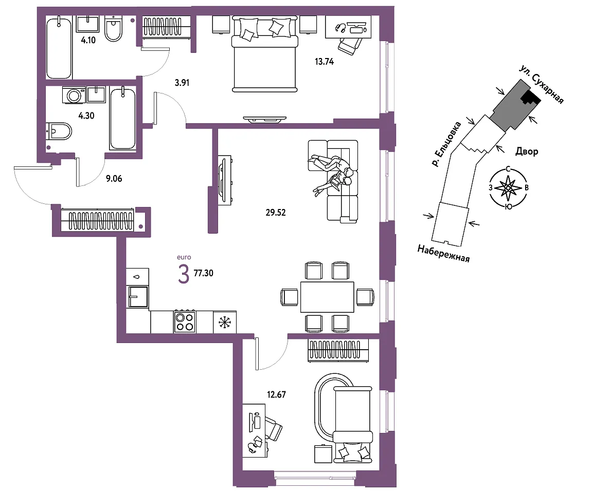 Купить новую трехкомнатную квартиру 77.3 м² на 28/29 этаже в ЖК «Страна.Береговая», г. Тюмень за 16435294 ₽ | Агентство недвижимости «Вплюсе.Топ» — Недвижимость России