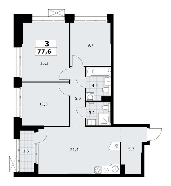 Площадь (общ/жил/кух), м2: 75.9/—/12.6