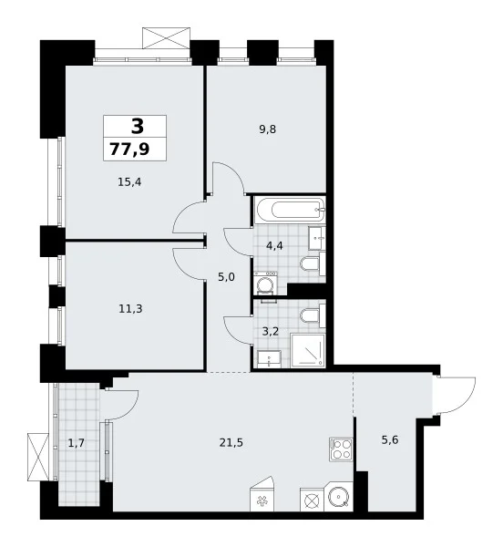 Площадь (общ/жил/кух), м2: 78/—/21.5