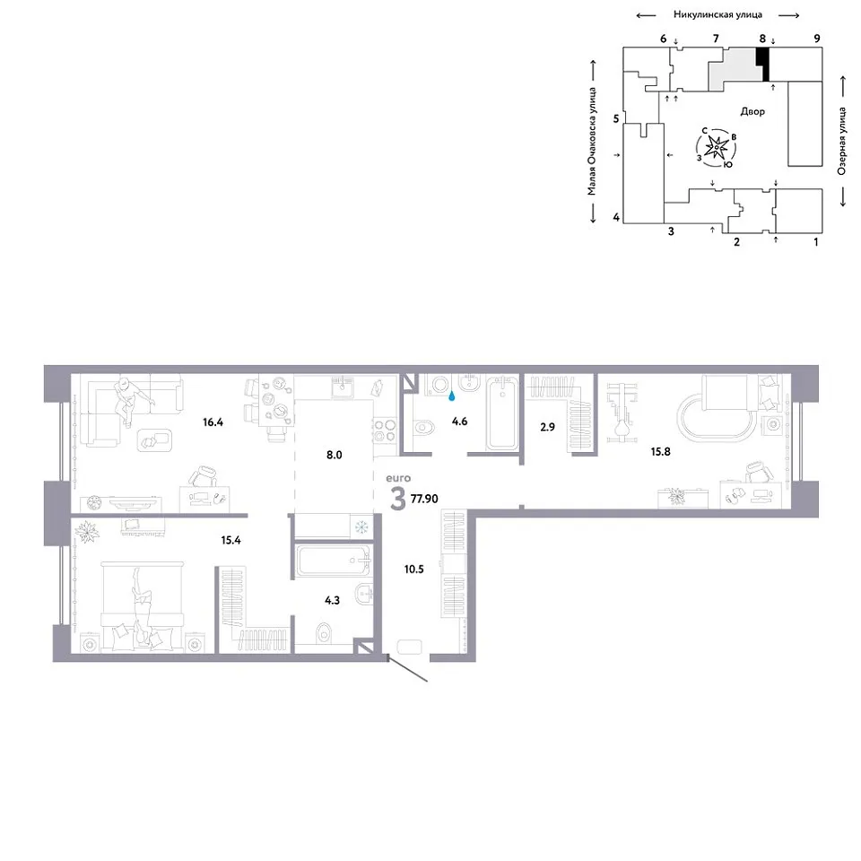 Купить новую трехкомнатную квартиру 77.9 м² на 2/30 этаже в ЖК «Страна.Озёрная», г. Тюмень за 36576471 ₽ | Агентство недвижимости «Вплюсе.Топ» — Недвижимость России