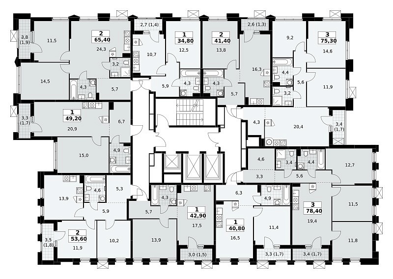 Количество комнат: 3, 78.4 кв.м.