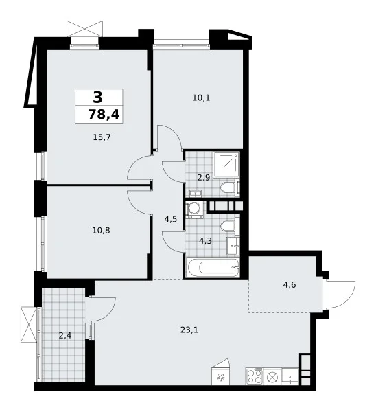 Купить новую трехкомнатную квартиру 78.4 м² на 9/17 этаже в ЖК «Прокшино», г. Тюмень за 29406272 ₽ | Агентство недвижимости «Вплюсе.Топ» — Недвижимость России
