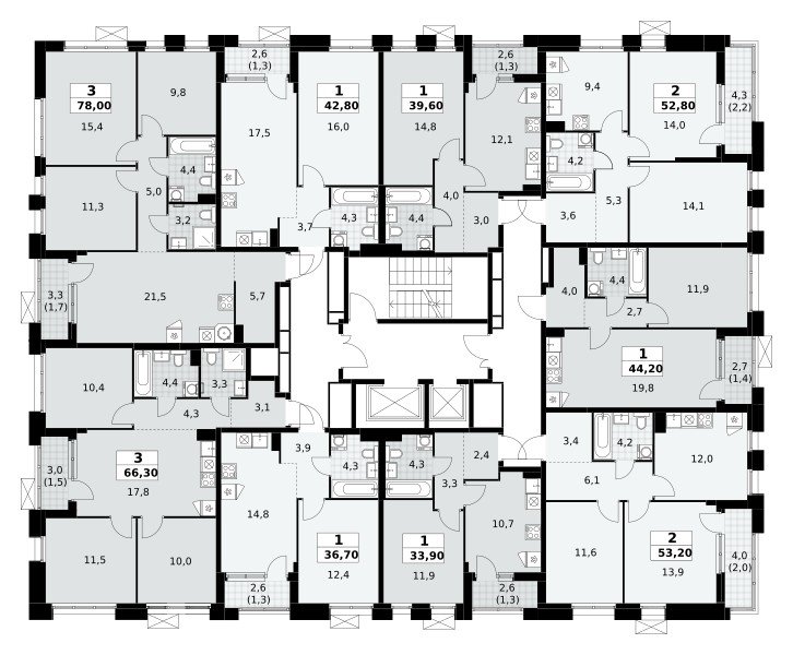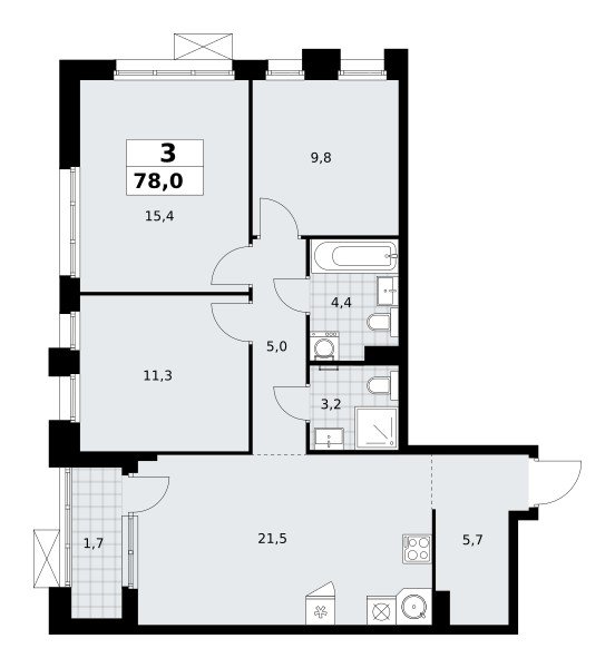 Площадь (общ/жил/кух), м2: 77.6/—/21.4