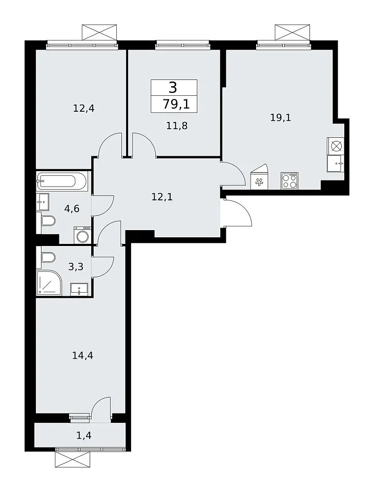 Количество комнат: 3, 79.1 кв.м.