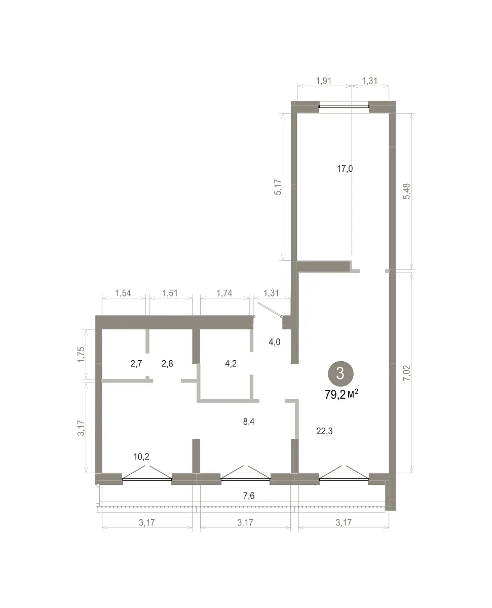 Количество комнат: 3, 79.18 кв.м.