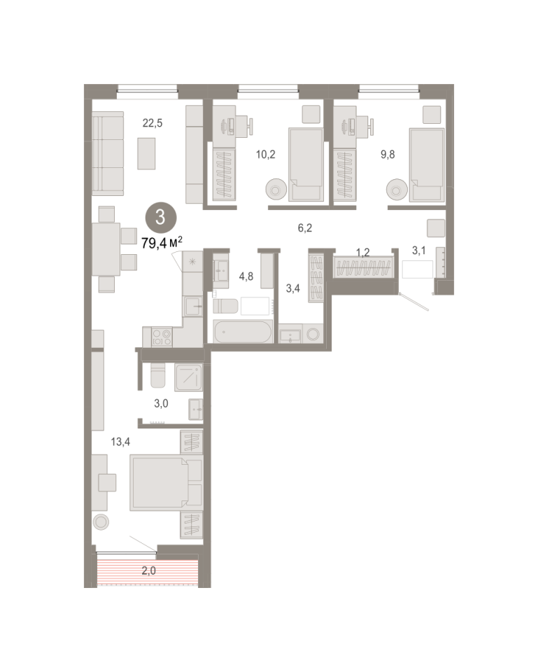 Купить новую трехкомнатную квартиру 79.39 м² на 6/7 этаже в ЖК «Октябрьский на Туре», г. Тюмень за 9790000 ₽ | Агентство недвижимости «Вплюсе.Топ» — Агентство недвижимости "Вплюсе.Топ"