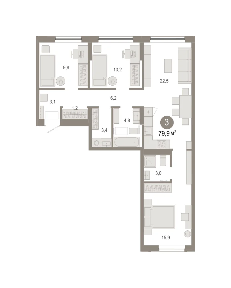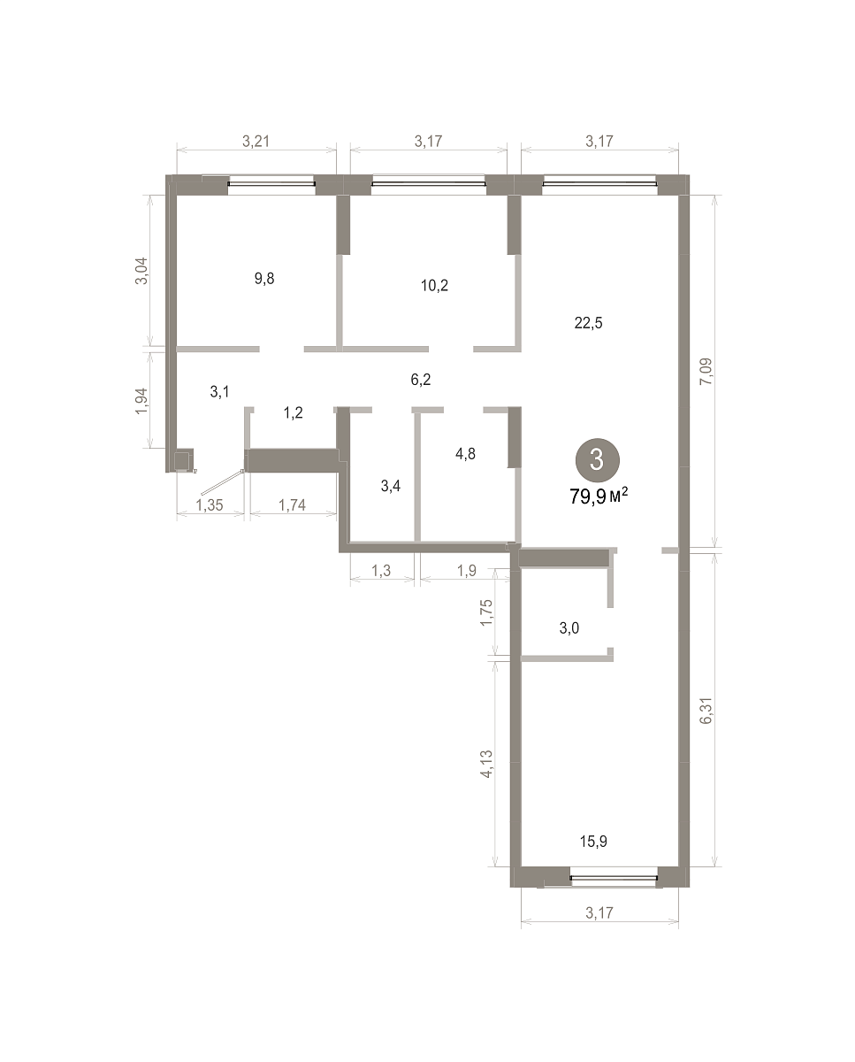 Количество комнат: 3, 79.93 кв.м.