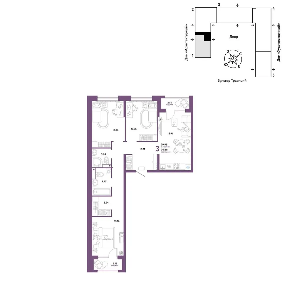 Купить новую трехкомнатную квартиру 79.98 м² на 11/15 этаже в ЖК «Домашний», г. Тюмень за 12168421 ₽ | Агентство недвижимости «Вплюсе.Топ» — Недвижимость России