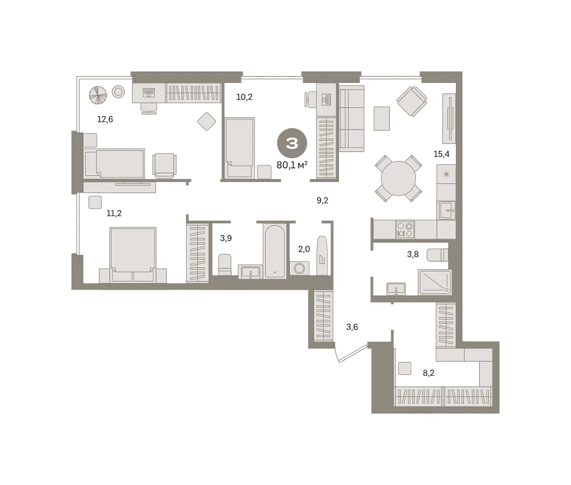 Количество комнат: 3, 80.09 кв.м.