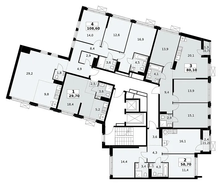 Площадь (общ/жил/кух), м2: 80.1/—/20.1