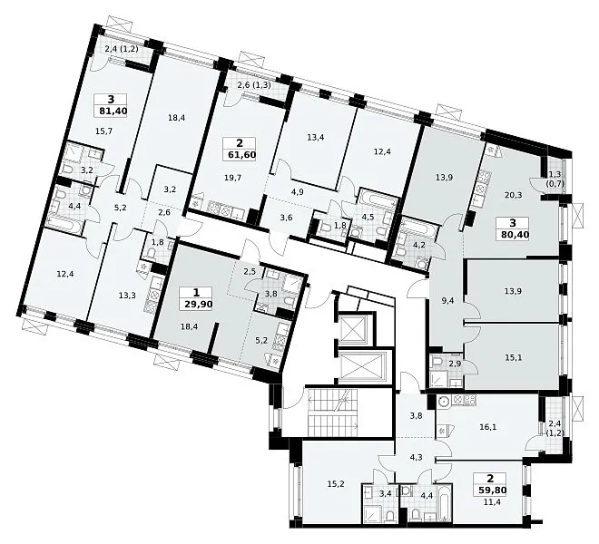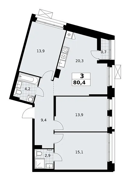 Площадь (общ/жил/кух), м2: 80.1/—/20.1