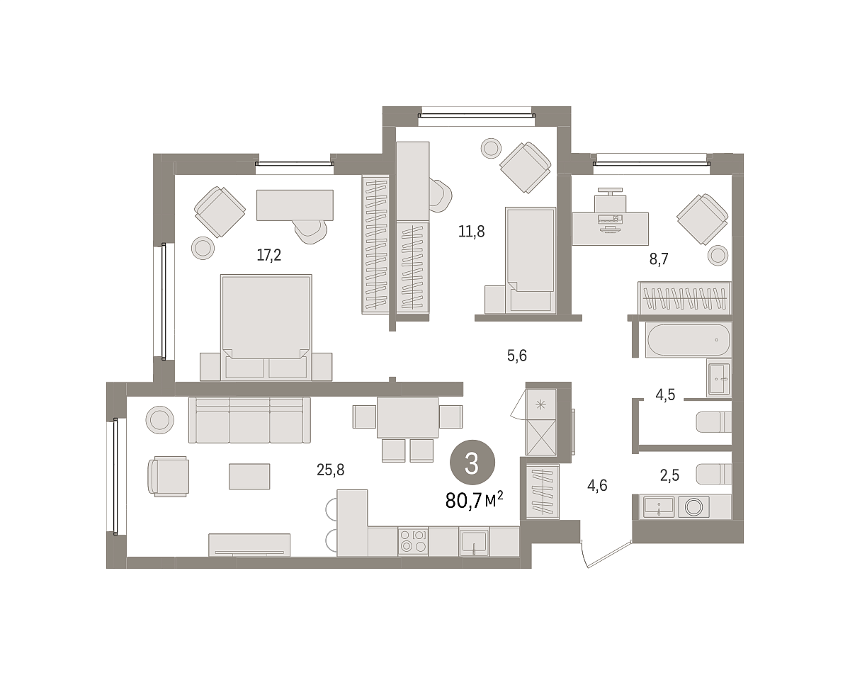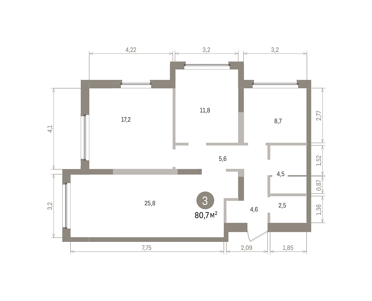 Количество комнат: 3, 80.66 кв.м.