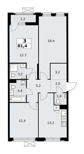 Купить новую трехкомнатную квартиру 81.4 м² на 5/14 этаже в ЖК «Прокшино», г. Тюмень за 28761062 ₽ | Агентство недвижимости «Вплюсе.Топ» — Недвижимость России