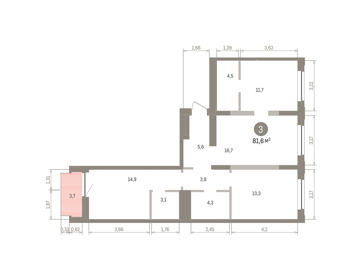 Площадь (общ/жил/кух), м2: 87.9/41.7/21.2