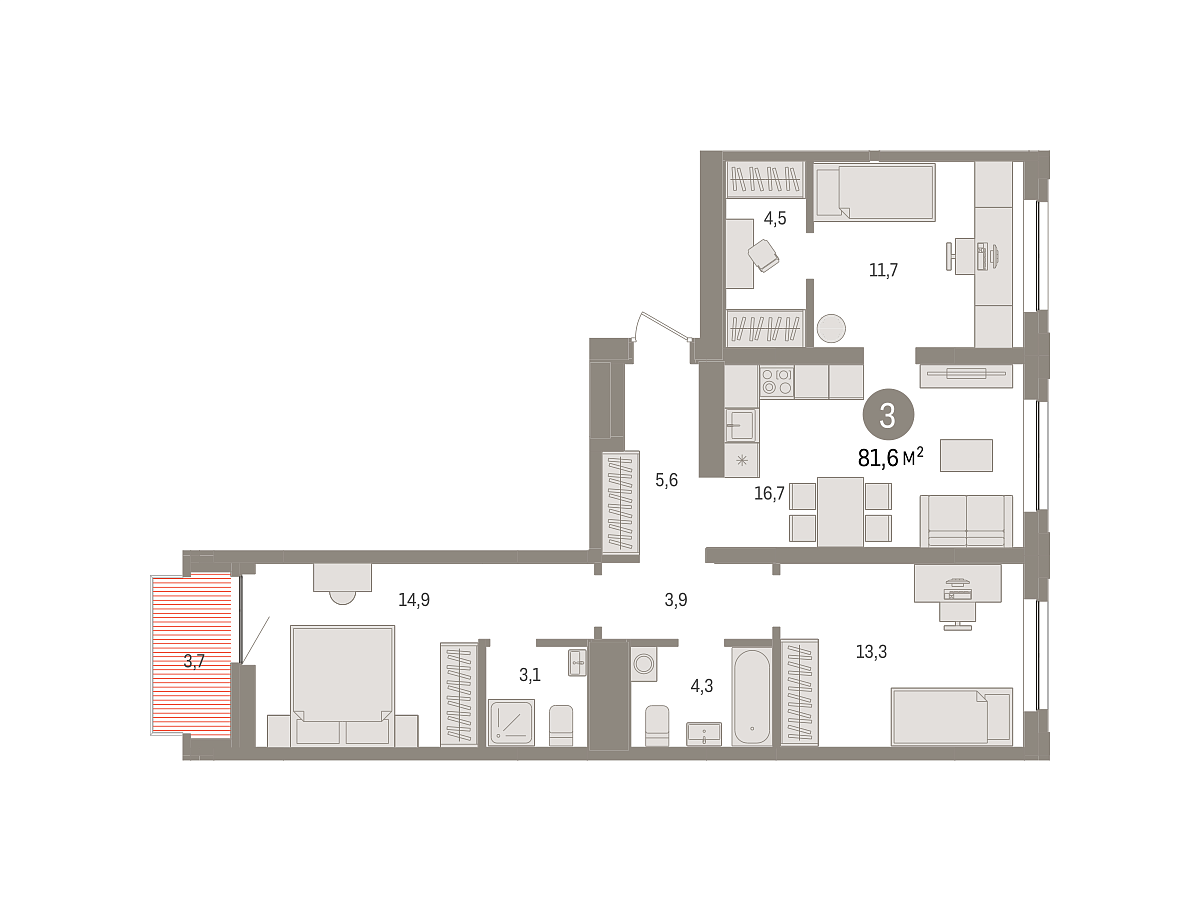 Купить новую трехкомнатную квартиру 81.5 м² на 7/9 этаже в ЖК «Речной порт», г. Тюмень за 10610000 ₽ | Агентство недвижимости «Вплюсе.Топ» — Недвижимость России