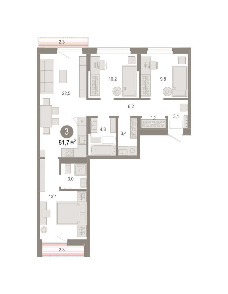 Купить новую трехкомнатную квартиру 81.7 м² на 4/7 этаже в ЖК «Октябрьский на Туре», г. Тюмень за 9850000 ₽ | Агентство недвижимости «Вплюсе.Топ» — Агентство недвижимости "Вплюсе.Топ"
