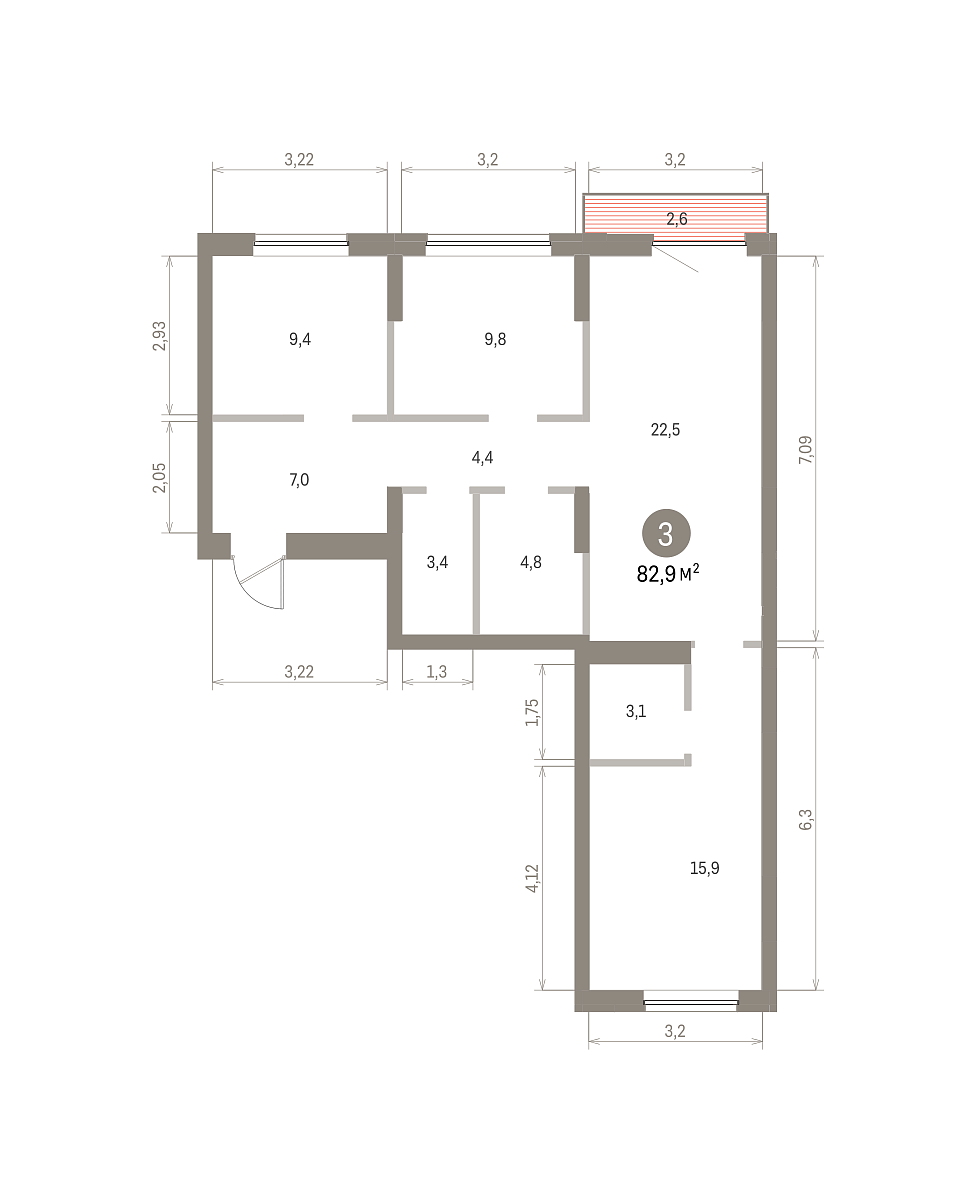 Площадь (общ/жил/кух), м2: 83.24/30.74/25.17