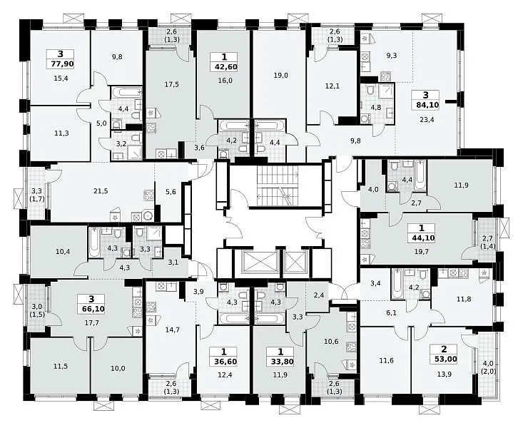 Площадь (общ/жил/кух), м2: 96.8/—/26.2