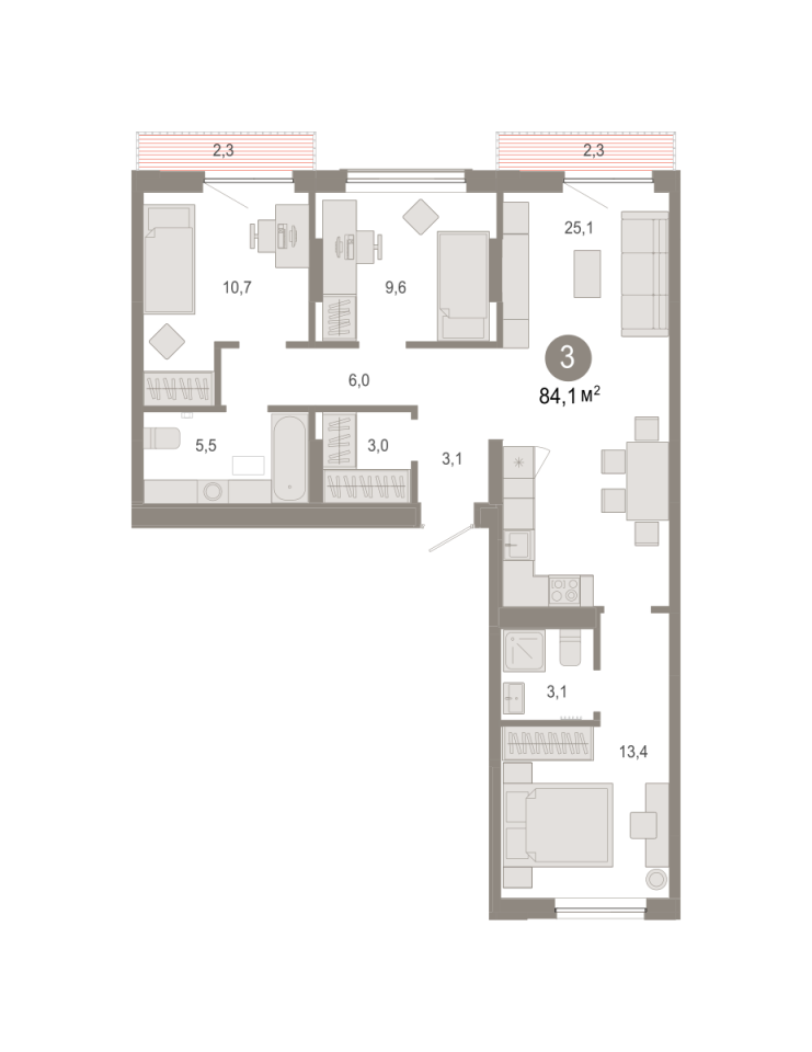 Купить новую трехкомнатную квартиру 84.13 м² на 6/9 этаже в ЖК «Октябрьский на Туре», г. Тюмень за 9900000 ₽ | Агентство недвижимости «Вплюсе.Топ» — Агентство недвижимости "Вплюсе.Топ"