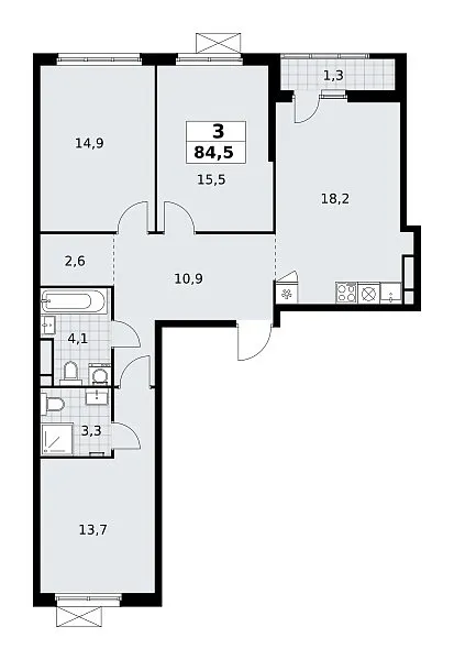 Площадь (общ/жил/кух), м2: 84.5/—/18.2