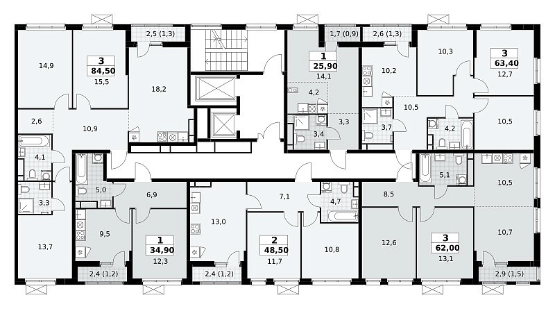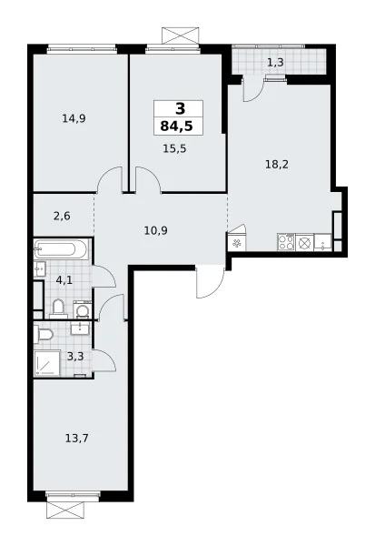 Количество комнат: 3, 84.5 кв.м.