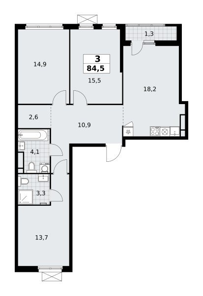Площадь (общ/жил/кух), м2: 84.5/—/18.2