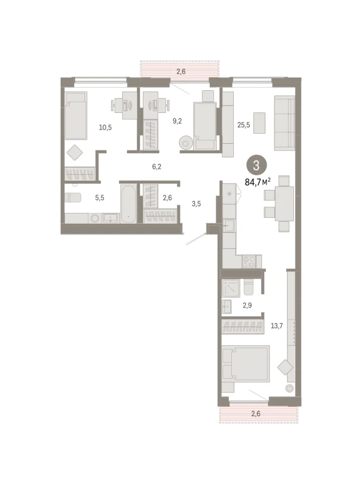 Купить новую трехкомнатную квартиру 84.72 м² на 6/9 этаже в ЖК «Октябрьский на Туре», г. Тюмень за 9060000 ₽ | Агентство недвижимости «Вплюсе.Топ» — Недвижимость России