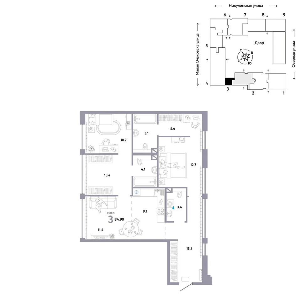 Купить новую трехкомнатную квартиру 84.9 м² на 9/30 этаже в ЖК «Страна.Озёрная», г. Тюмень за 51986667 ₽ | Агентство недвижимости «Вплюсе.Топ» — Недвижимость России