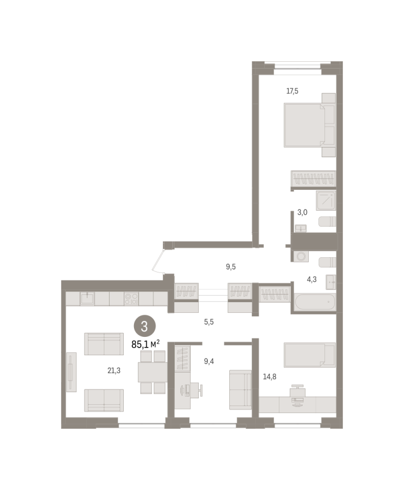 Купить новую трехкомнатную квартиру 85.1 м² на 3/10 этаже в ЖК «Речной порт», г. Тюмень за 12510000 ₽ | Агентство недвижимости «Вплюсе.Топ» — Агентство недвижимости "Вплюсе.Топ"