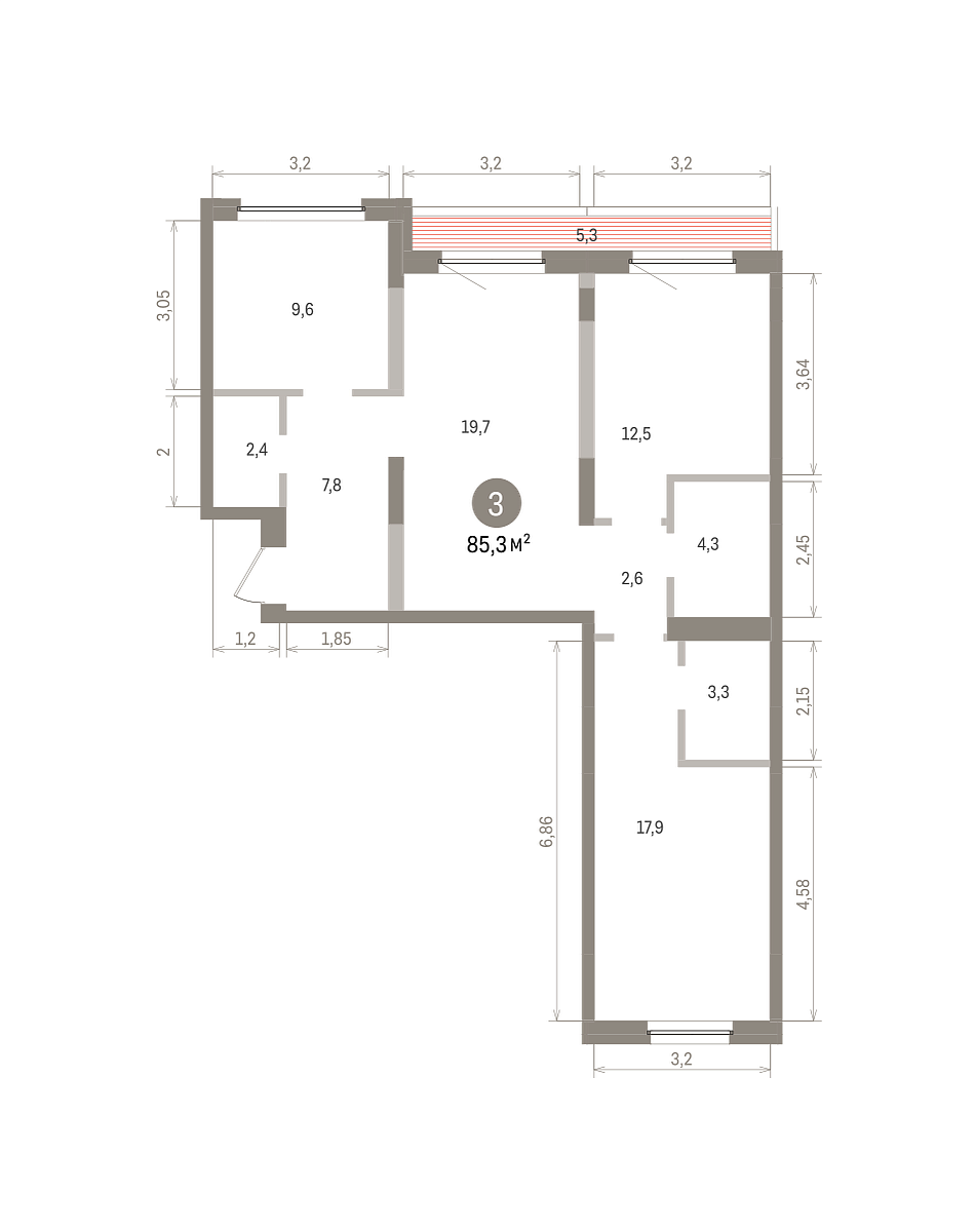 Площадь (общ/жил/кух), м2: 82.53/23.43/30.77