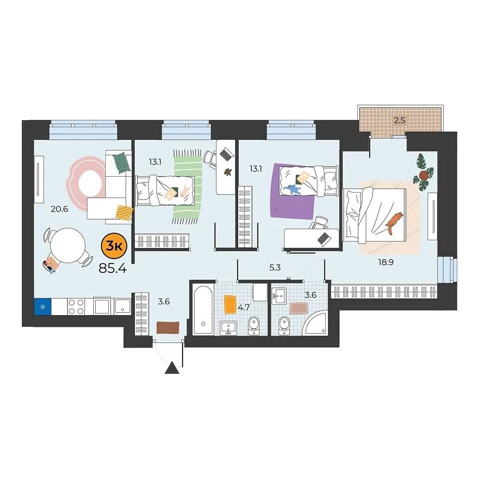Купить новую трехкомнатную квартиру 85.4 м² на 3/7 этаже в ЖК «Корней», г. Тюмень за 13039477 ₽ | Агентство недвижимости «Вплюсе.Топ» — Недвижимость России
