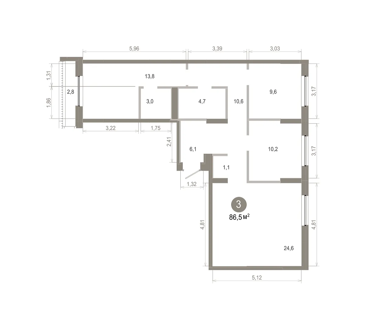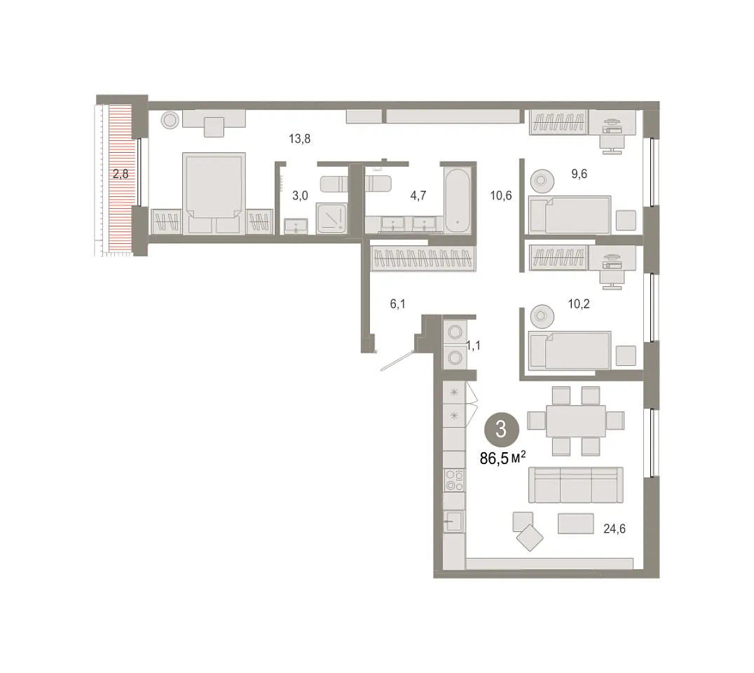 Количество комнат: 3, 86.52 кв.м.
