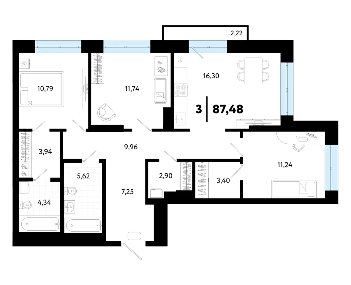 Купить новую трехкомнатную квартиру 87.48 м² на 6/24 этаже в ЖК «Квартал в Гагаринском парке», г. Тюмень за 10850000 ₽ | Агентство недвижимости «Вплюсе.Топ» — Недвижимость России