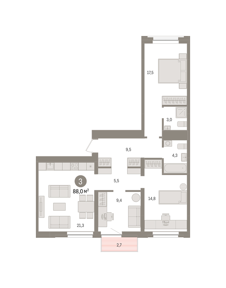 Купить новую трехкомнатную квартиру 87.9 м² на 5/10 этаже в ЖК «Речной порт», г. Тюмень за 10790000 ₽ | Агентство недвижимости «Вплюсе.Топ» — Недвижимость России